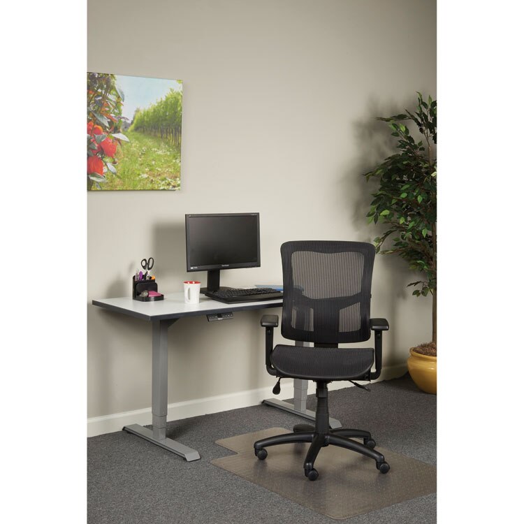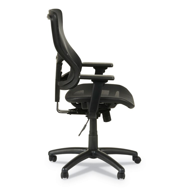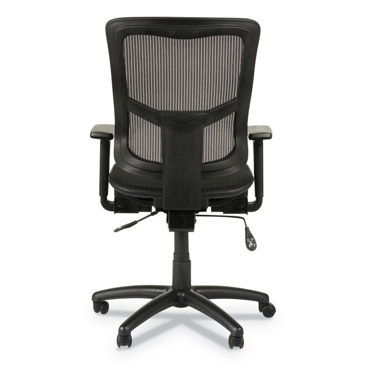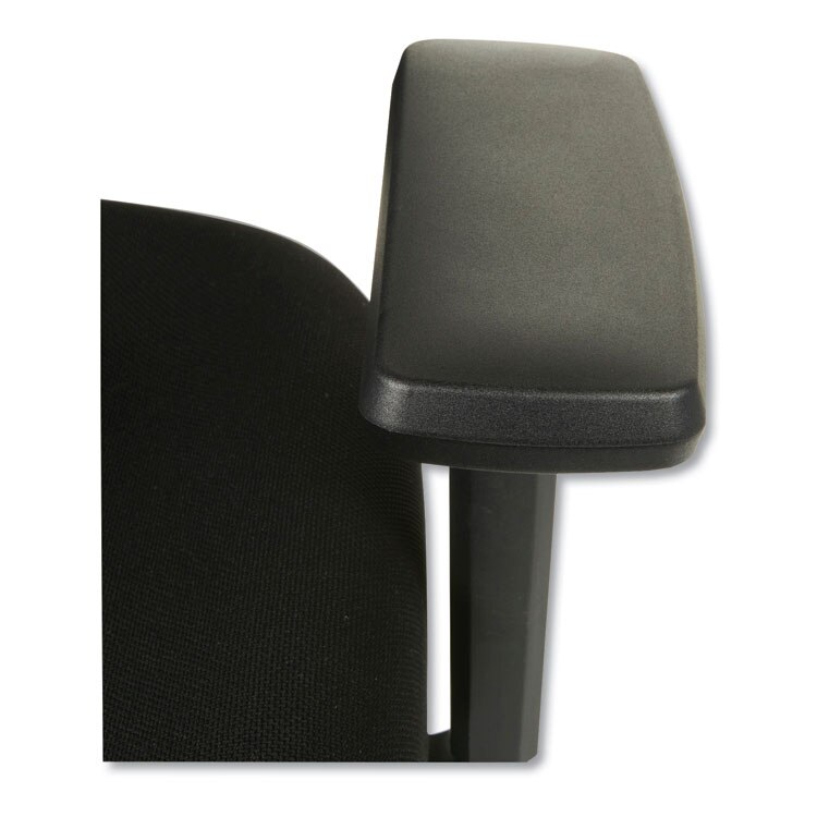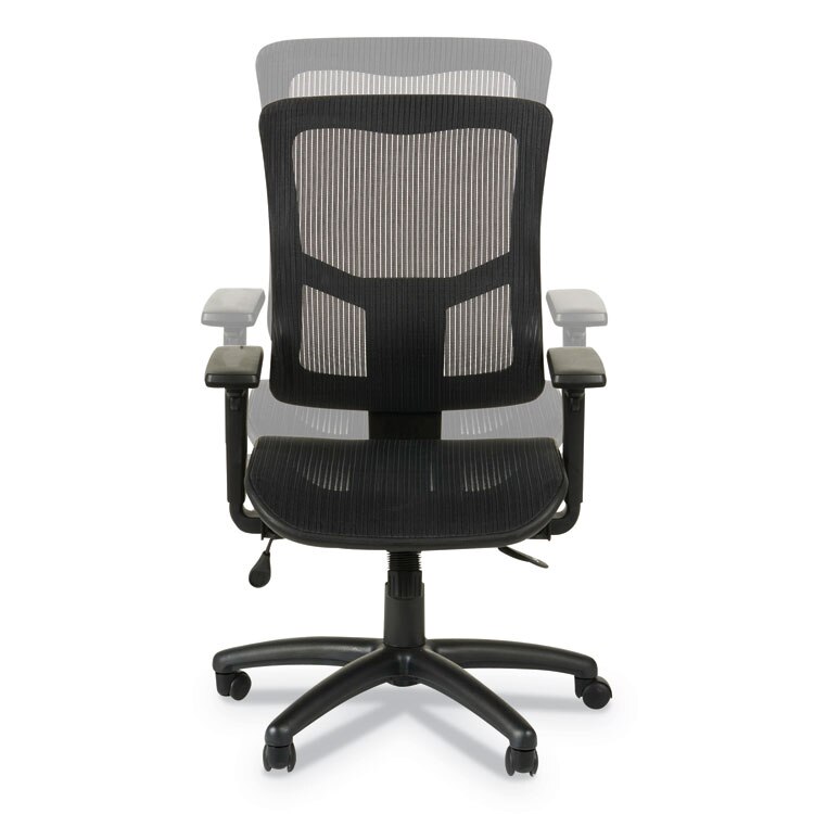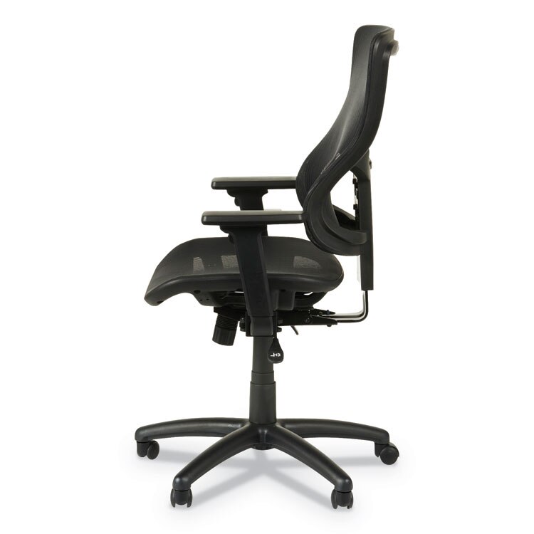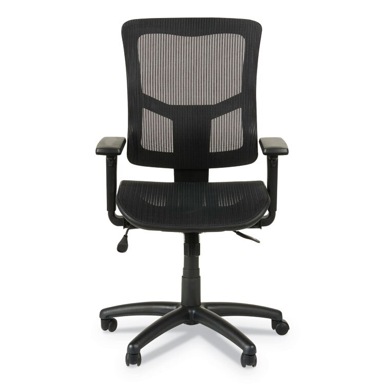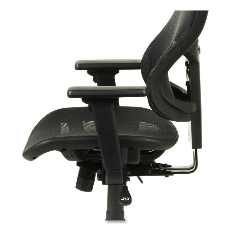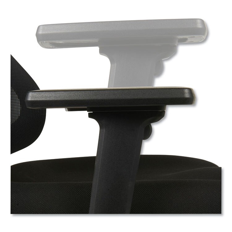 Featuring a sophisticated design, this mid-back office chair is ideal for any modern, professional working environment. Breathable mesh seat and back enable greater air circulation to keep you cool all day, even if your office isn't. Synchro-tilt mechanism offers reclining at a 2-to-1 back to seat angle ratio, so your feet stay flat on the floor while enjoying a relaxed position. Seat slide feature adjusts the seat forward and back, allowing you to find your ideal seat depth for your height. Chair arms are height and width adjustable, as well as pivot in and out, enabling your arms to rest in a comfortable position. Ergonomically designed chair frame encourages proper posture. Height adjustable ratchet back delivers optimal lumbar support. Recommended Applications: Conference, Training & Meeting; Executive & Management; General Office & Task; Seat Color: Black; Back Color: Black; Color Family: Black.